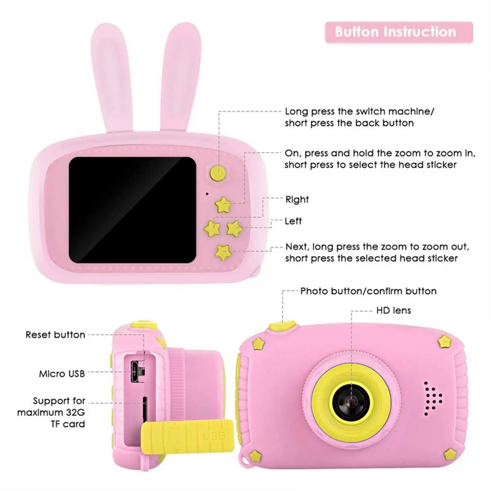 Kamera Kanak-kanak Digital (Reka Bentuk Arnab Haiwan) – Kamera Seronok dan Kreatif untuk Kanak-kanak