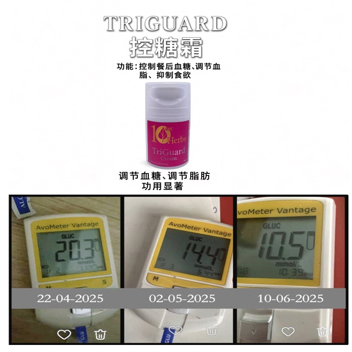 10秒草本三效护肌霜是一款快速吸收的透皮草本配方,旨在辅助健康的生活方式,帮助您维持每日代谢平衡。这款乳霜富含精选植物萃取精华,通过温和的草本呵护,帮助促进餐后血糖平衡、调节血脂和控制食欲。
