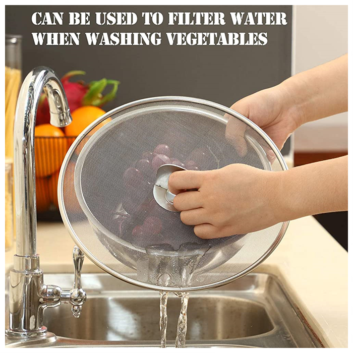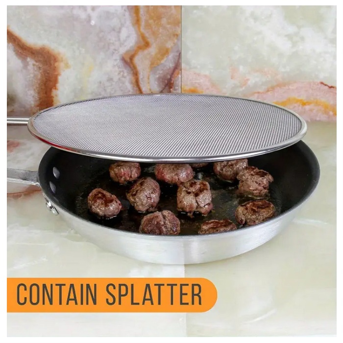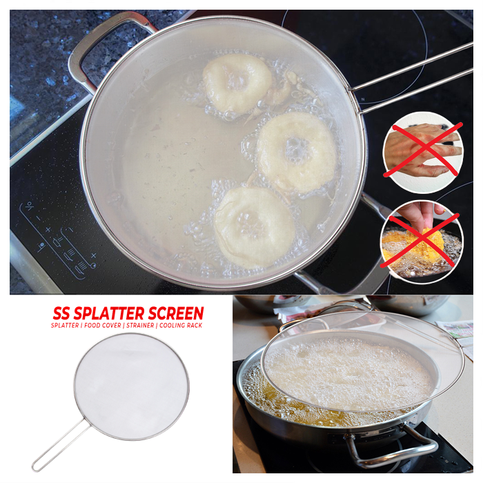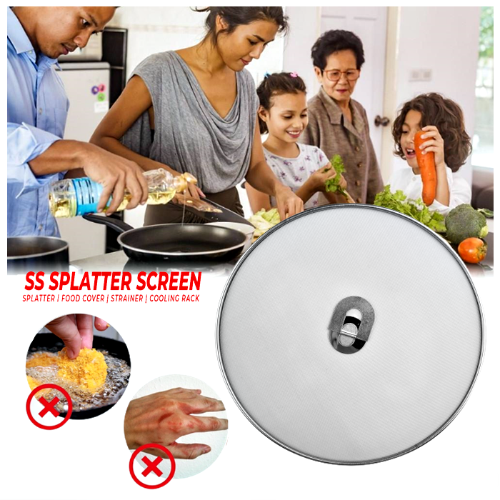 *Skrin jaring halus 33 sentimeter dalam pelindung percikan ini adalah penutup kebanyakan periuk, kuali dan kuali.