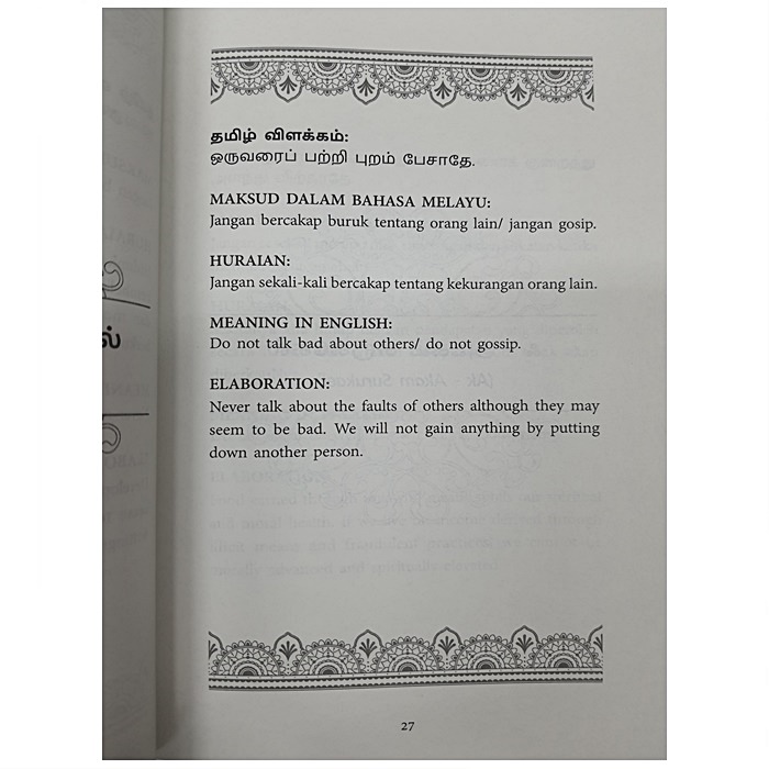 The verses in Aathichudi are usually used to teach children who have just started school. The meaning in each spoken sentence is loaded with a moral message that begins with the Tamil alphabet. Now, this work is suitable to be read by all ages and races.