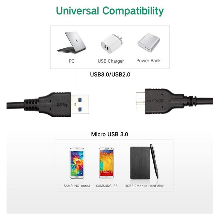 - High quality USB 3.0 cable, compliant with USB1.1, USB2.0, USB3.0