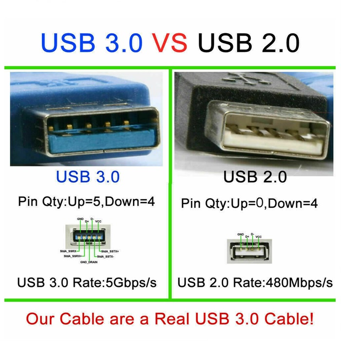 - USB 3.0 cable provided 10 times data transfer speed than USB 2.0.