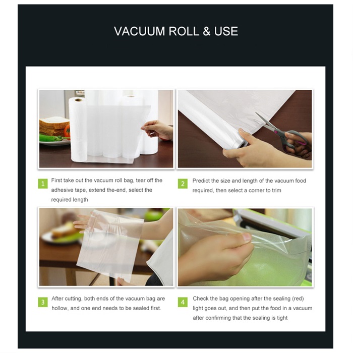 - Widely used for vacuum packaging food, tea, dried fruit, medicines, meat and anything you want to keep it as fresh as the day you pack it.