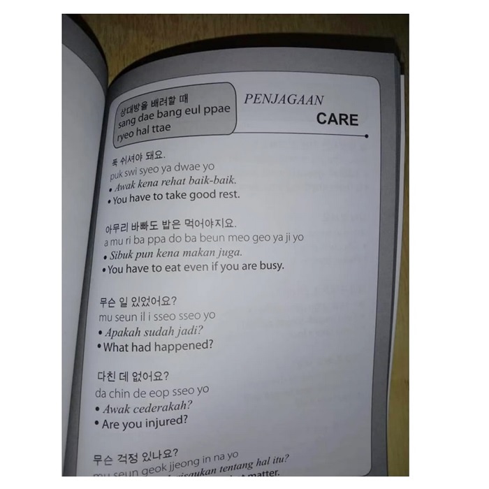 This book is designed for those who want to learn basic Korean within a short period of time. The use of simple phrases and sentences will help readers to grasp the language in no time at all. Available in three languages of Bahasa Malaysia, English and Korean and is suitable for all age groups.