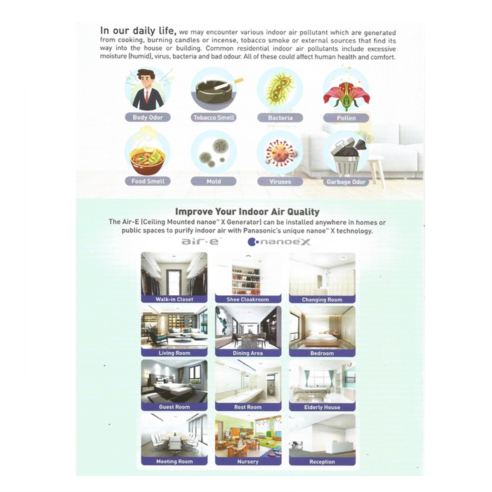 air-e can be placed in any enclosed space where odours are a concern, such as closets and shoe storage areas. nanoe™ can effectively penetrate clothing fibers and minimise a wide variety of odours including body odours, tobacco odours, and pet odours.