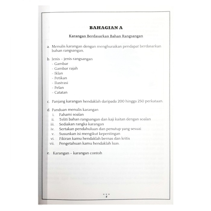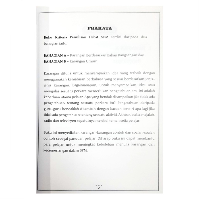 The SPM Great Writing Criteria Book consists of two parts, namely: PART A - Essays based on stimulus material and