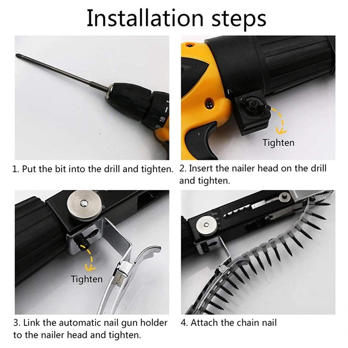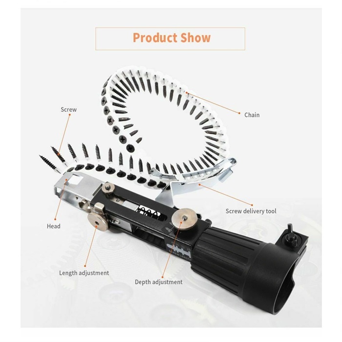 -Comes with a chain designed to hold 50 screws, making it easy to assemble and operate.