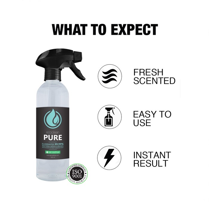 Ecoclean Pure instantly kills and prevents the spread of 99.99% of bacteria, mold & viruses. Its plant based cucumber & aloe extracts disinfects and cleans surfaces effectively and instantly, keeping you and your loved ones safe. The rinse-free, non-sticky and quick drying formula is effective on all surfaces such as door knobs, offices, children’s nursery, table and countertops, toilet surfaces & much more. What’s great about ecoclean pure: eco-friendly, plant based extracts, kills bacteria, mold & viruses instantly, rinse-free, non-sticky, quick drying. How to use: Just spray onto surface and wipe off where necessary. No rinse required. #ecocleanpure #iglcoatings #antibacterial #antivirus #antimould