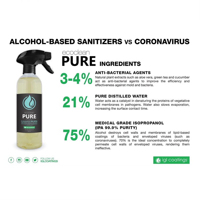 Ecoclean Pure membunuh serta-merta dan menghalang penyebaran 99.99% bakteria, kulat & virus. Ekstrak timun & aloe berasaskan tumbuhan membasmi kuman dan membersihkan permukaan dengan berkesan dan serta-merta, memastikan anda dan orang tersayang selamat. Formula bebas bilas, tidak melekit dan cepat kering berkesan pada semua permukaan seperti tombol pintu, pejabat, taska kanak-kanak, meja dan kaunter, permukaan tandas & banyak lagi. Apa yang menarik tentang ecoclean pure: mesra alam, ekstrak berasaskan tumbuhan, membunuh bakteria, acuan & virus serta-merta, bebas bilas, tidak melekit, cepat kering. Cara penggunaan: Hanya sembur ke permukaan dan lap jika perlu. Tiada bilas diperlukan. #ecocleanpure #iglcoatings #antibakteria #antivirus #antikulat