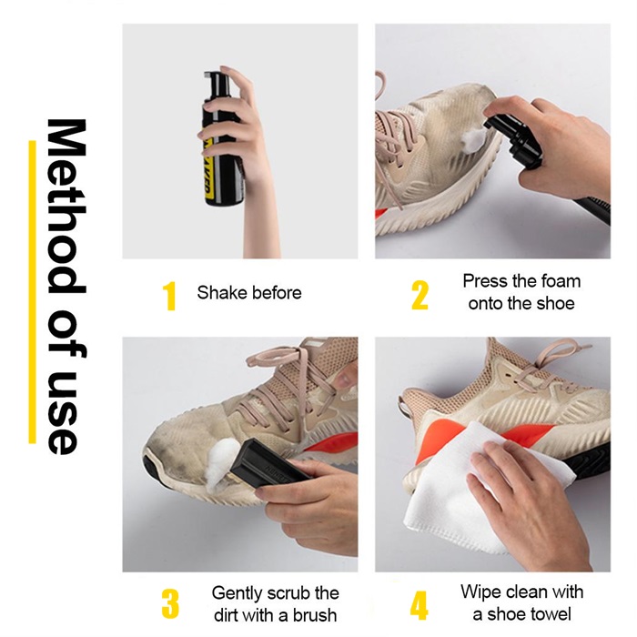 2. Picitkan sejumlah besar Pembersih buih pada kasut / kasut anda.