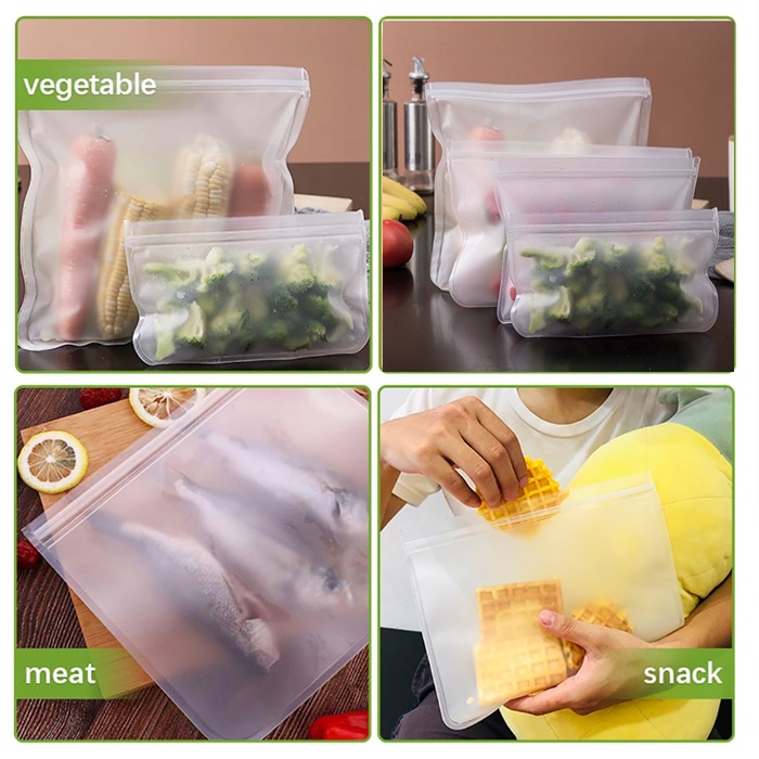 [ 可重复使用的食品保鲜袋 ] [ 厨房冰箱蔬菜保鲜冷冻袋 ] [ 不含 BPA 的硅胶材料 ]