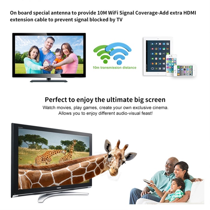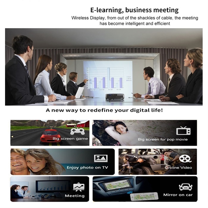 -Berbilang Fungsi: Menyokong filem dalam talian, siaran web, penyemakan imbas web dan YouTube dalam 1080P. Serasi dengan semua peranti iOS 8.0+ dan Mac OS melalui Airplay, dan semua peranti Windows 8.1+ dan Android 4.4+.