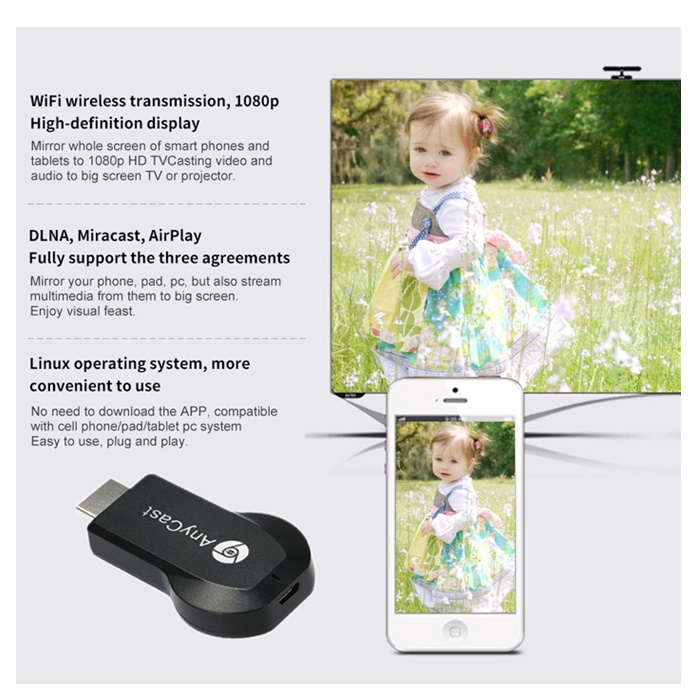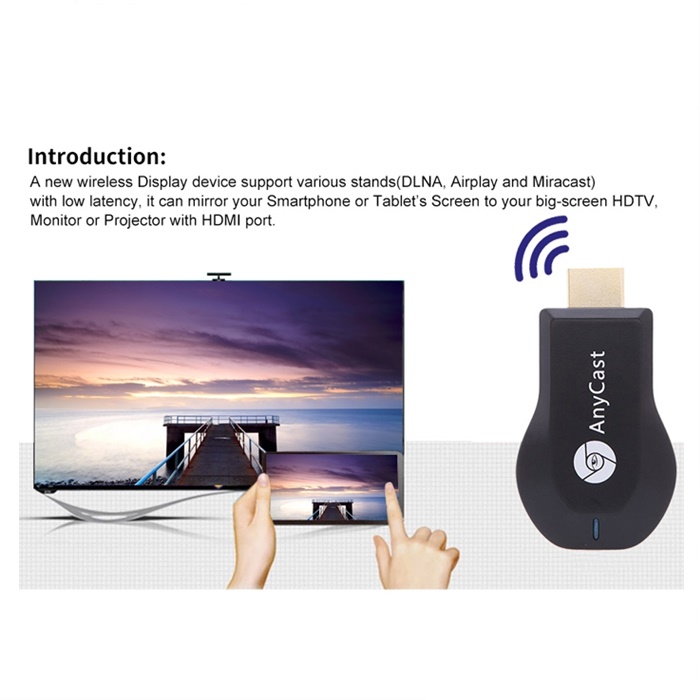 AnyCast M4 Plus Penerima Dongle Paparan WiFi Wayarles, 1080P HDMI Media Video Streamer TV Stick, DLNA Airplay Miracast Chromecast