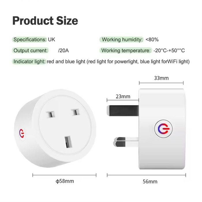 Product function : electricity metering statistics indicator light : red and blue light (red light for power light, blue light for WIFI light)