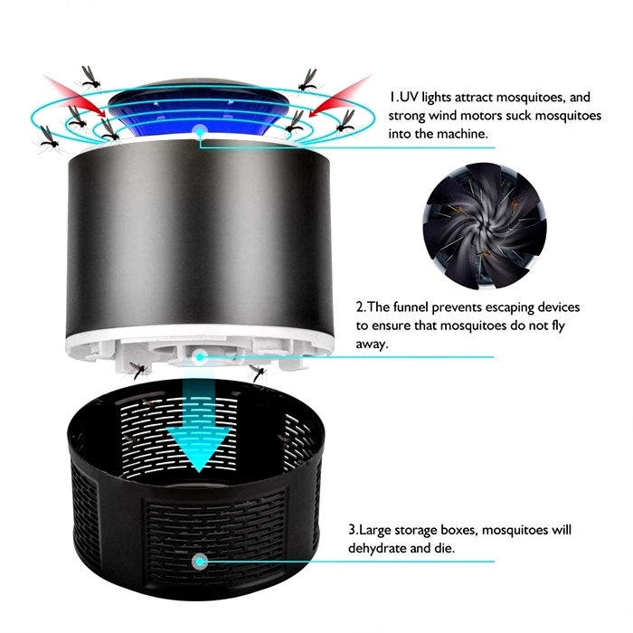 *Powerful airflow of fan can make vortex to kill mosquitoes safely and easily by air drying and dehydration.