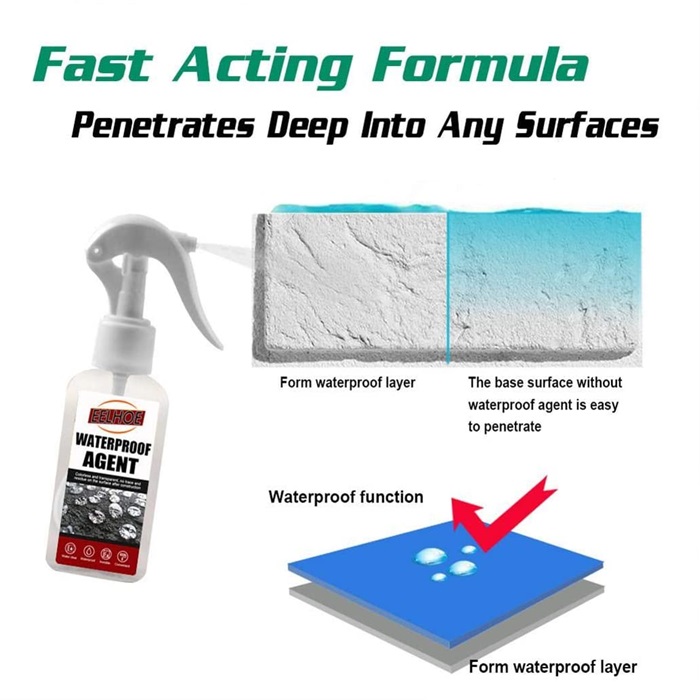 4. Bentuk lapisan kalis air: semburkan secara langsung atau sapukan agen kalis air di permukaan jubin seramik, jubin lantai dan jubin dinding sehingga agen kalis air menembusi ke lapisan asas. Dalam beberapa minit. Apabila tidak ada cecair di permukaan, semburkan tiga kali untuk meningkatkan kesannya. Setelah menyembuhkan selama 24-48 jam, lapisan kalis air akan terbentuk, dan lapisan kalis air akan diperkuat dengan berlalunya masa.
