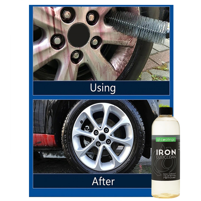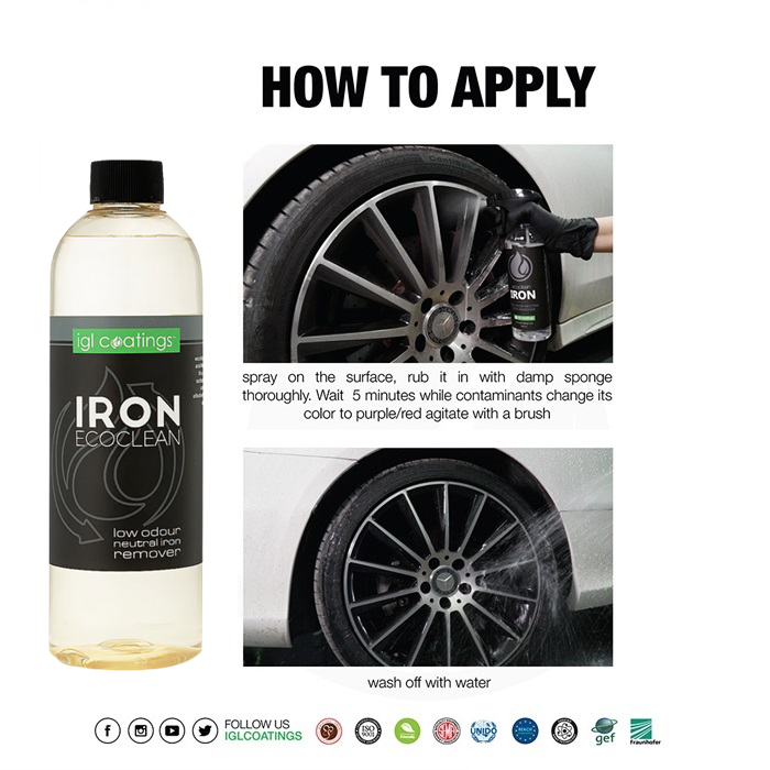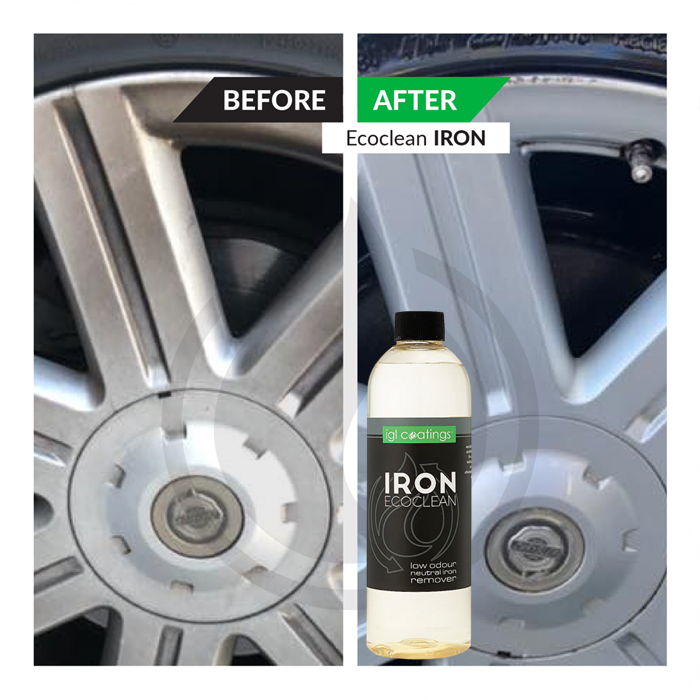 Ecoclean Iron ialah berasaskan nanoteknologi bau rendah berasaskan air, sangat berkesan, bebas asid & pH seimbang (~7pH) penyingkir besi. Ia juga berkesan dan selamat untuk digunakan pada semua permukaan kereta dan tidak akan merosakkan kot jernih. Besi Ecoclean mengandungi bahan kimia unik yang berkesan melarutkan besi tersinter dengan membentuk kompleks besi larut air dan menghentikan kakisan.