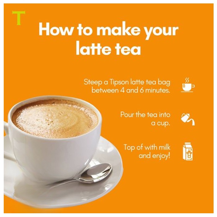 *Cadangan membancuh: Untuk memanfaatkan setiap cawan, masak air hingga mendidih dan curam selama 4 hingga 6 minit. Kami mengesyorkan anda mengambil Teh Latte Tipson panas!