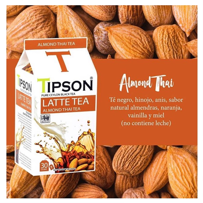 *Nutty Almond dan Vanilla Thai Tea: Teh Latte Thai Almond Tipson ialah ramuan manis rempah Asia, madu, badam panggang dan vanila. Teh lazat ini sesuai untuk dinikmati sebagai latte teh pagi atau teh ais campuran berkrim pada waktu siang.