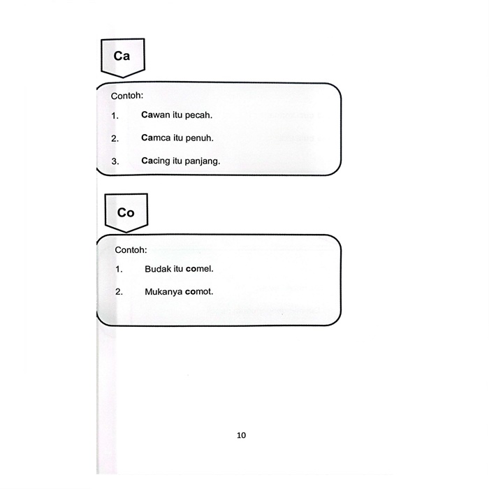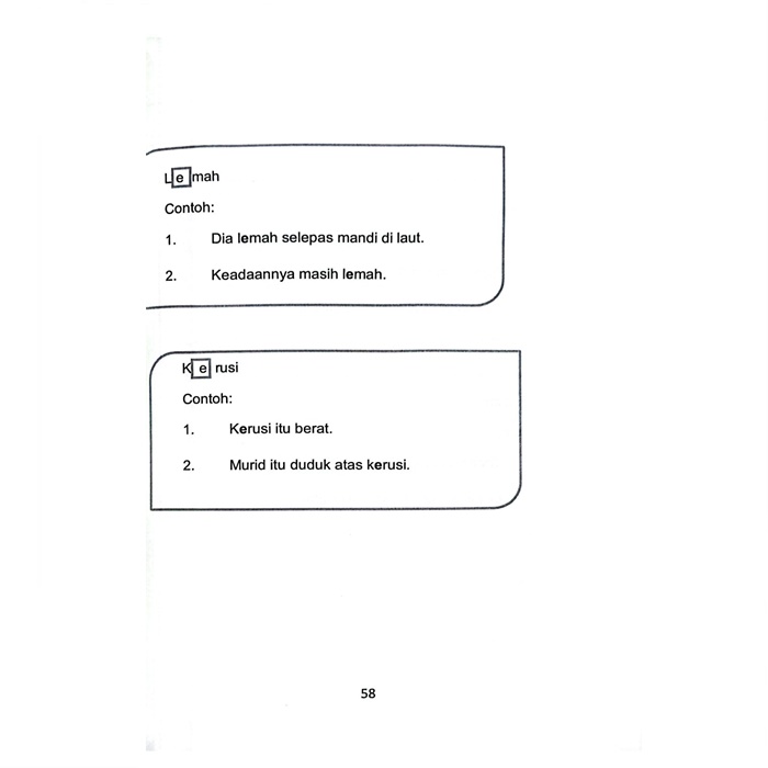 * Latihan bertema yang membantu pelajar memahami perkaitan antara sukukata dan perkataan penuh.