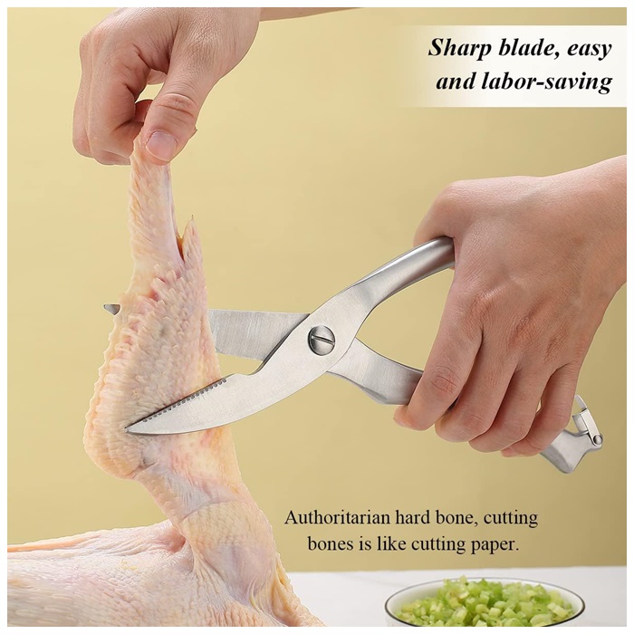 2. This kitchen shears can give you more control compared to cutting meat with knives or cleavers. It is safer to cut exactly where you want, and it also enables you to cut through bone like butter. Work well for both delicate jobs like snipping herbs and heavier jobs like butterflying and spatchcocking a Turkey