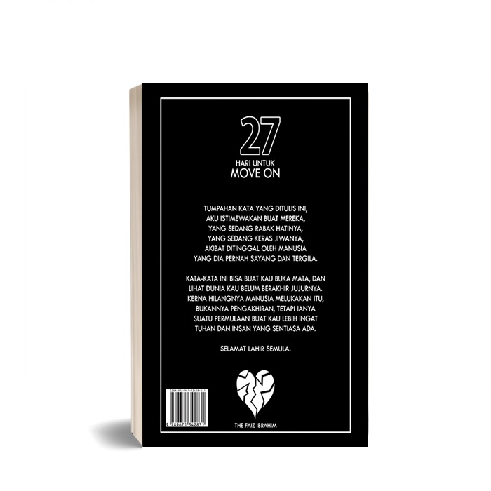 27 Hari untuk Move On ini merupakan sebuah warkah ikhlas daripada aku buat insan yang pernah jadi seperti aku pada suatu ketika dahulu. Buku ini dikarangkan buat insan yang sedang bengkak atau retak hatinya dek kerana ditinggal oleh manusia yang dia pernah sayang sepenuh hatinya. Buku ini akan mengajar mereka bahawa, cinta itu penting tetapi ianya bukan segalanya.