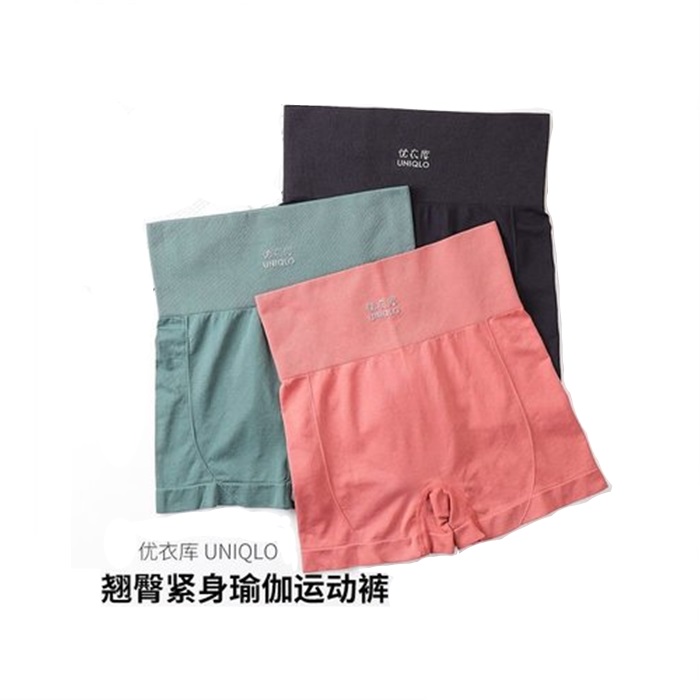 -Uniqlo seluar yoga gaya selebriti jaring yang sama, seluar sukan tiga perempat wanita, pantat ketat pinggang tinggi, perut, seluar pinggul peach nipis, seluar UNIQLO