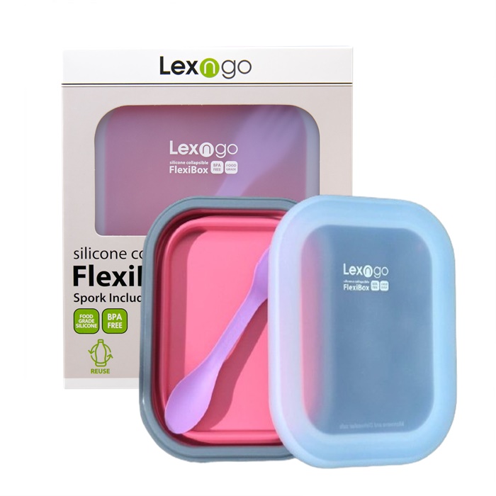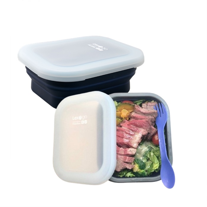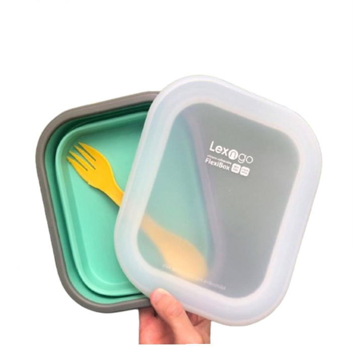Sederhana Kotak Flexi Boleh Dilipat Silikon dengan Spork