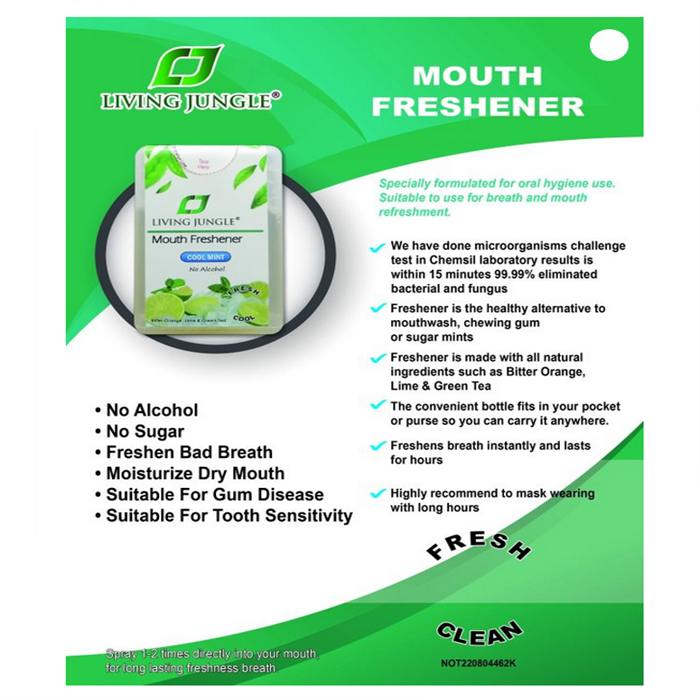 Sembur 1-2 kali terus ke dalam mulut anda, selepas makan atau merokok, untuk nafas segar yang tahan lama. Semua Semulajadi Selamat Telan Menyegarkan nafas