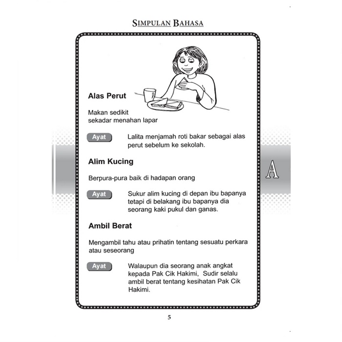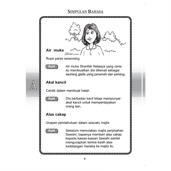 This book is divided into two parts, namely Language and Proverbs with their meanings and example sentences that are suitable for the level of students at the primary school level. Each Language and Proverbs is arranged in alphabetical order.