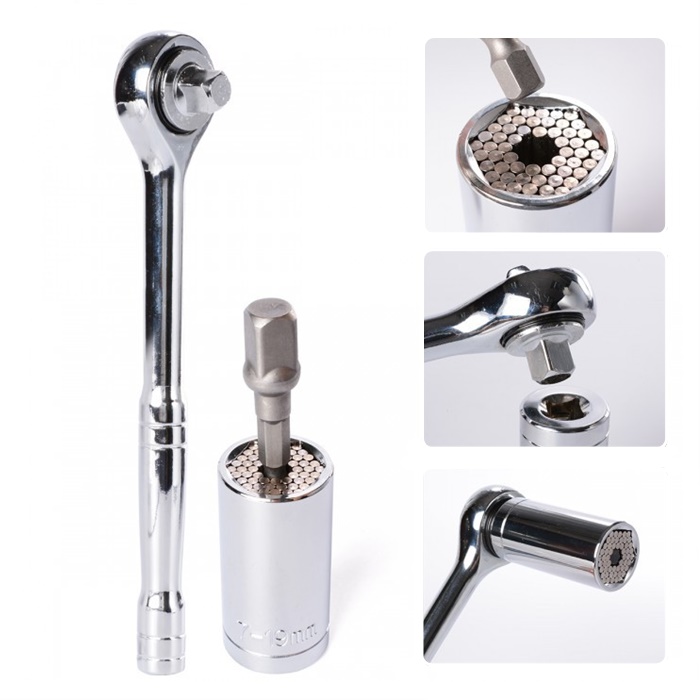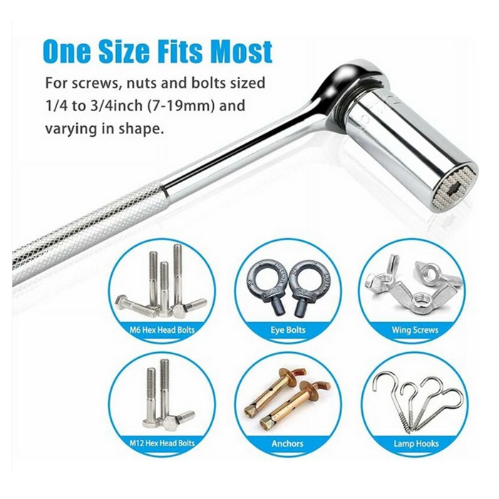 Upgrade your toolbox with this multi-functional universal socket wrench set! Designed with high-quality carbon steel and a polished chrome finish, this tool self-adjusts to fit thousands of fasteners, making it a must-have for both professionals and DIY enthusiasts.