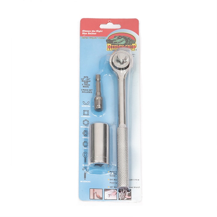 3件套通用套筒扳手工具套装 (7-19mm),含棘轮和钻头转接器